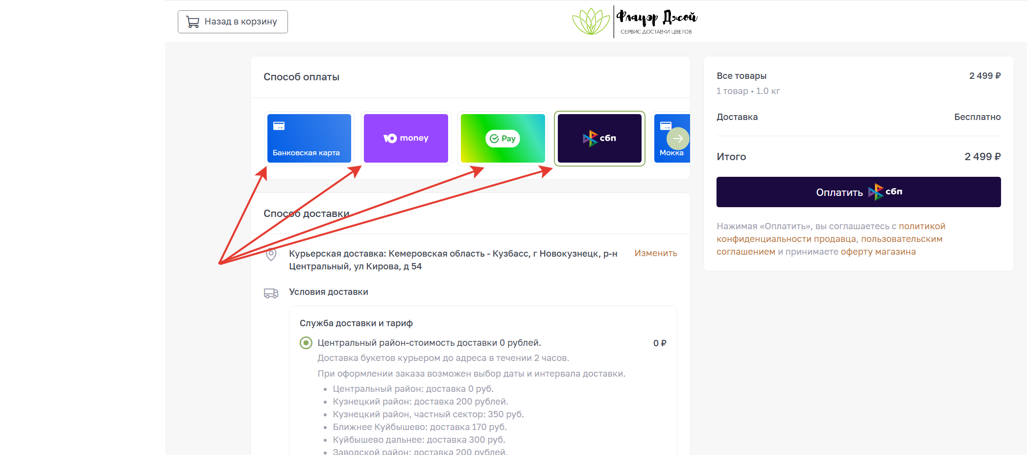 Все эти способы вы можете выбрать на странице оформления заказа.