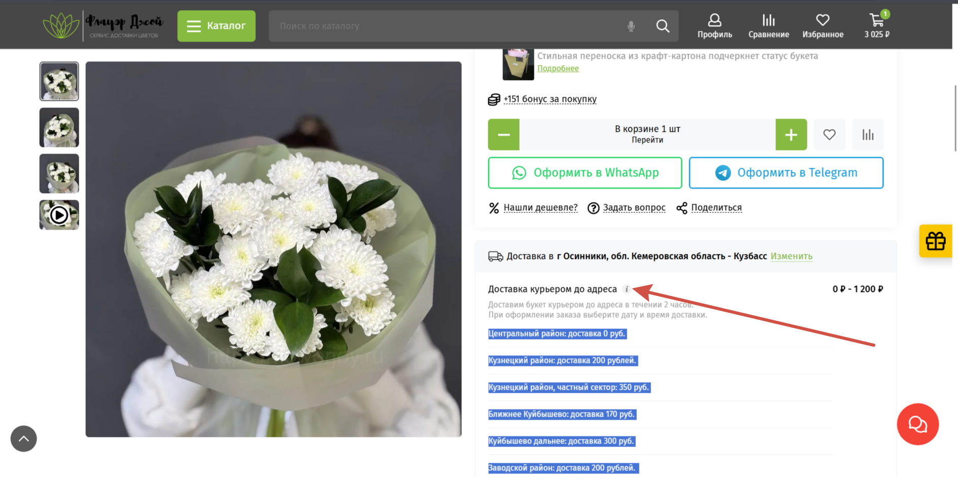 Мы предлагаем быструю и надежную курьерскую доставку букетов по всему г. Новокузнецку и Новокузнецкому р-ну, а так же в г. Прокопьевск, г. Осинники. Ориентировочная стоимость доставки, отображается в Карточке товара: