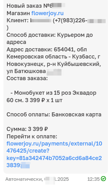 На всем протяжении до момента доставки букета, вы будете получать сервисные уведомления о заказе.