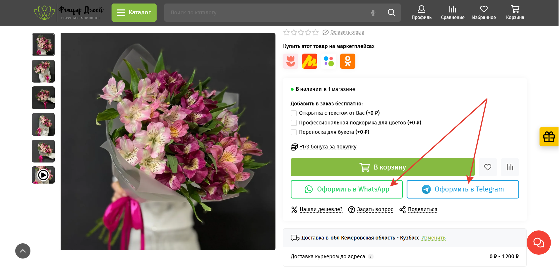 Для этого перейдите по кнопке "Оформить в WhatsApp" или "Оформить в Telegram", укажите ваш адрес, дату и желаемое время для доставки.