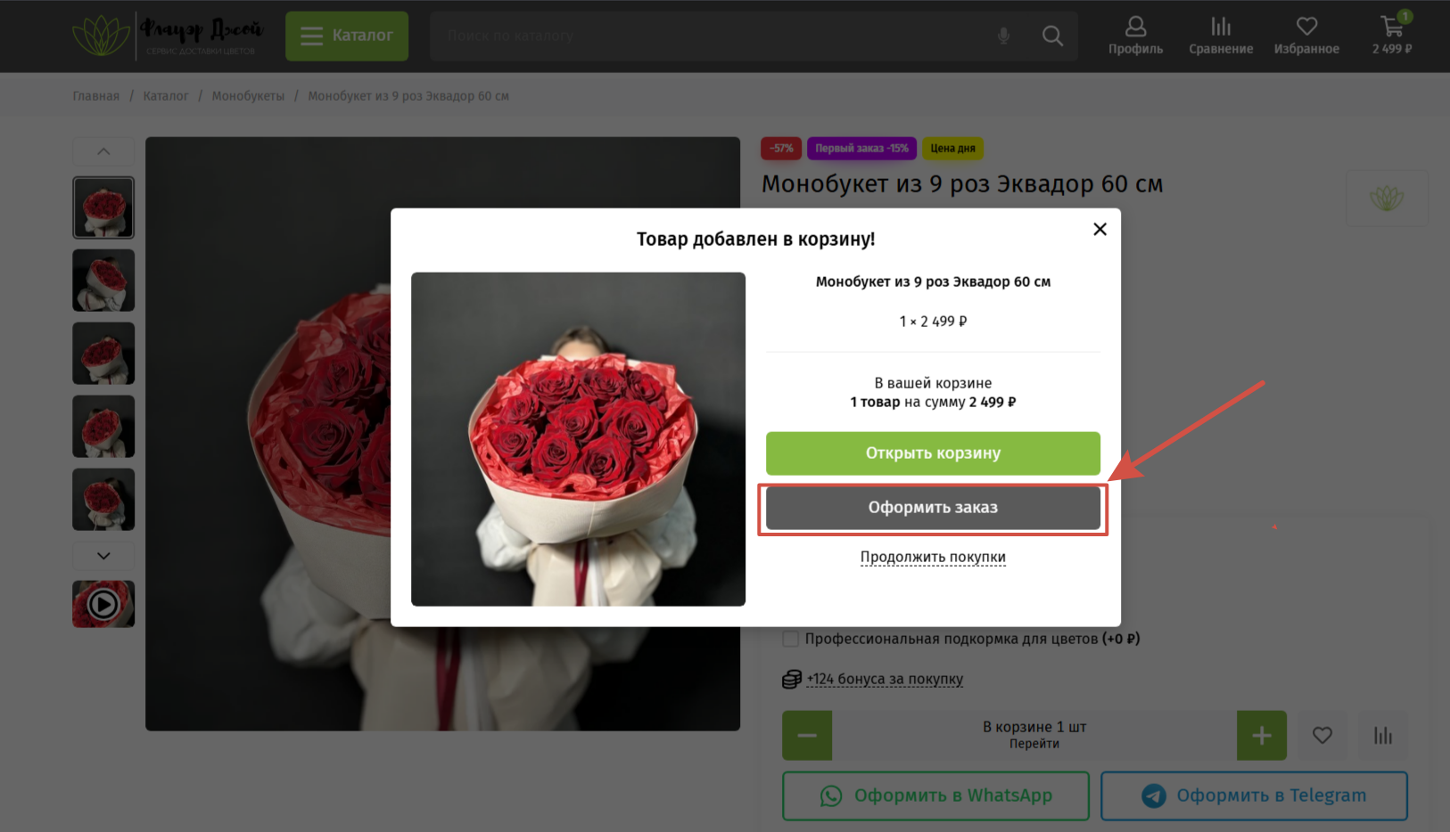 4. В всплывающем окне нажмите кнопку "Оформить заказ"