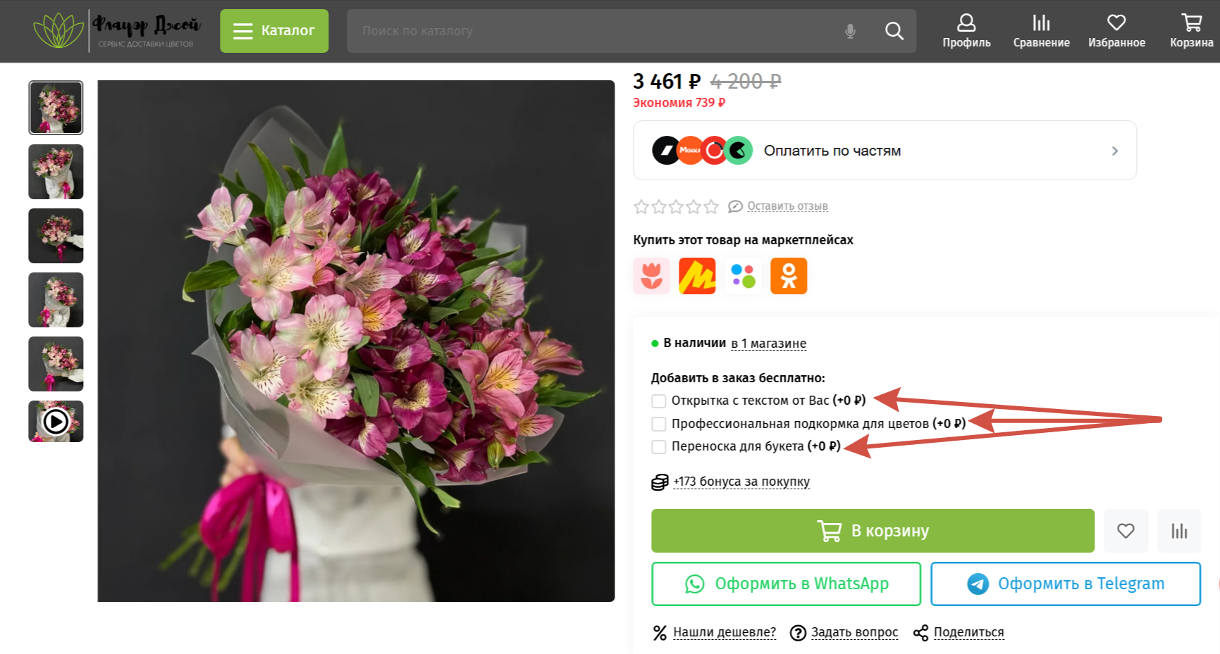 К каждому букету, мы готовы добавить абсолютно бесплатные опции: