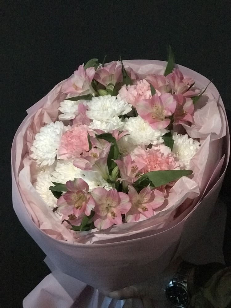 Погрузитесь в атмосферу утонченной красоты вместе авторским букетом от Флауэр Джой! Изящные белые хризантемы, романтичные розовые гвоздики и нежные альстромерии подарят эмоции, которые запомнятся надолго. Премиальное оформление из тишью завершает образ идеального подарка для ваших близких. Отправьте свои искренние чувства вместе с этим элегантным цветочным посланием прямо сейчас!